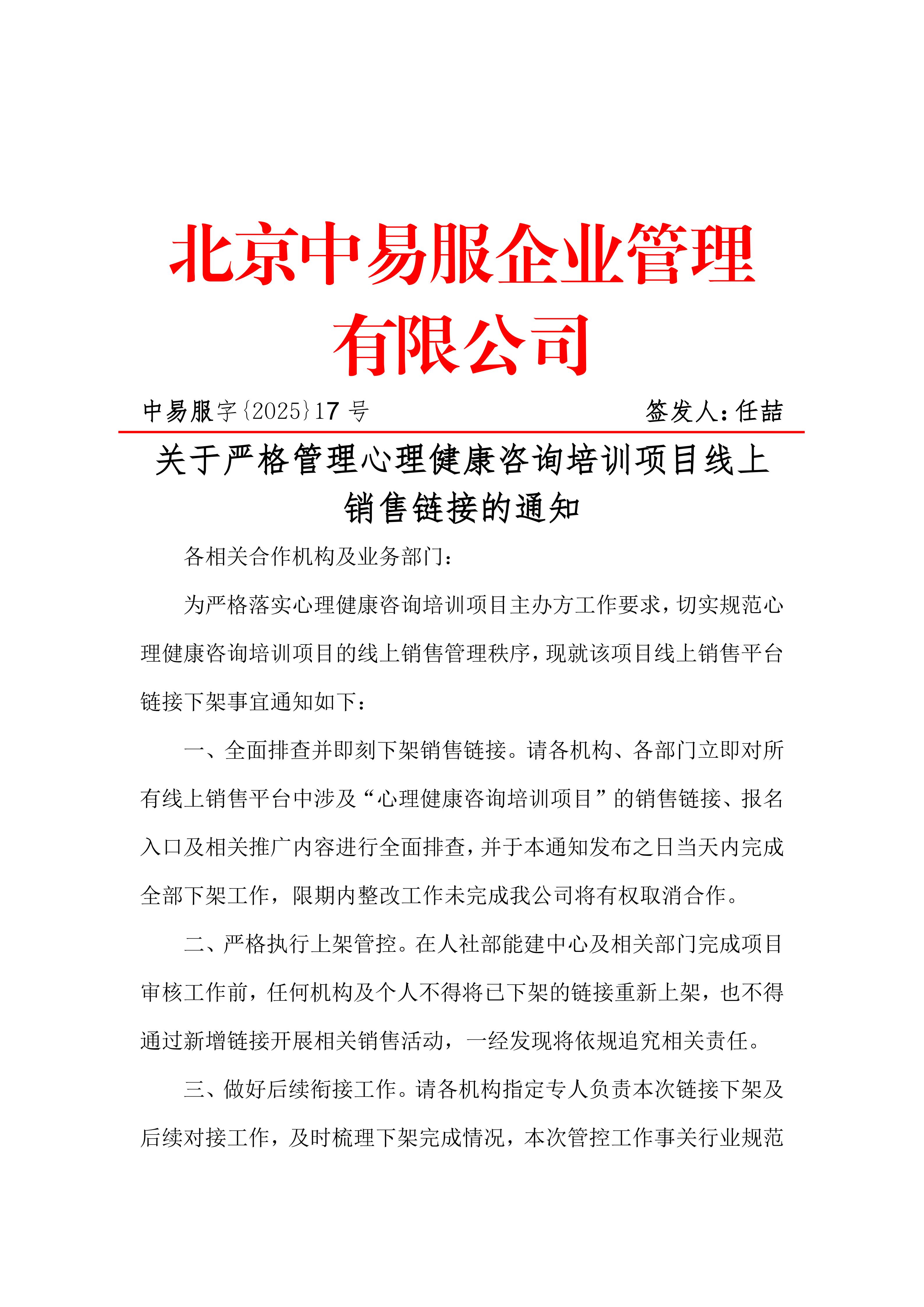 关于严格管理心理健康咨询培训项目线上销售链接的通知